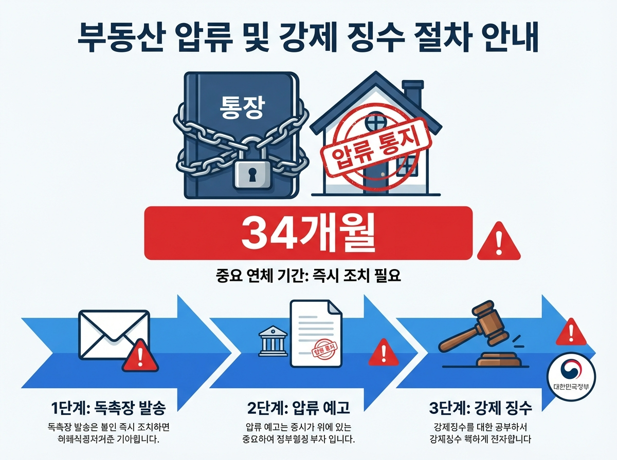 34개월 이상 장기 미납 시, 공단은 체납 처분 절차에 돌입합니다. 이는 단순한 경고가 아닌 법적 조치입니다.