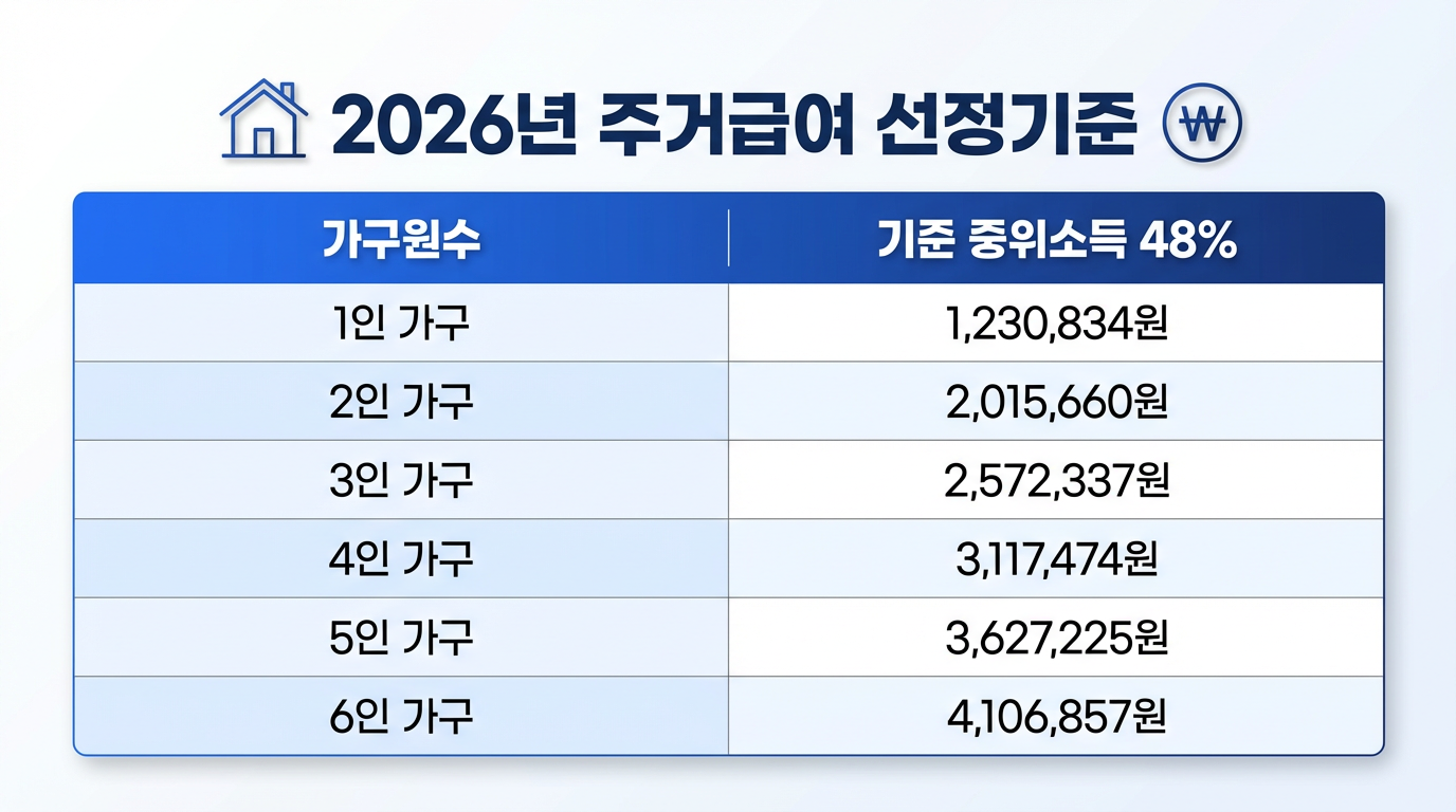 이 글에서는 2026년 적용 기준을 중심으로, 주거급여 신청자격과 소득인정액 계산법, 그리고 실제 수령 가능한 금액까지 상세히 정리합니다.